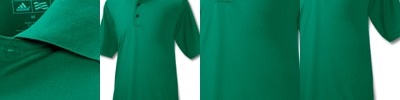 100% lightweight polyester • 5.2-oz. • moisture-wicking finish • rib-knit collar • 3-button placket • set-in open-hem sleeves • contrast Adidas heat seal logo on back yoke • Sizes: S-3XL