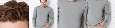 40-single 55% combed and ring-spun cotton/45% polyester • 4.5-oz. • mini thermal knit • slightly fitted • contrast reverse cover-stitch at neck • shoulder • armholes • Sizes: S-2XL