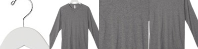preshrunk 65% polyester/35% cotton jersey • 4-oz. • 30 singles for extreme softness • 1x1 baby rib-knit set-in collar • satin label • Sizes: S-2XL