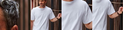 pre-shrunk 100% combed cotton jersey • 3.7-oz. • 36 singles for extreme softness • front cover-stitched 1x1 baby rib-knit set-in collar • satin label • Sizes: S-2XL