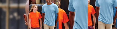 preshrunk 100% cotton jersey • 6.1-oz. • banded neck and armholes • double-needle bottom hem • quarter-turned to eliminate center crease • Sizes: S-2XL