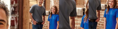 50% cotton/50% polyester • made in the USA • 5.4-oz. • open-end yarn • full-cut • shoulder-to-shoulder taping • double-needle hems • Sizes: S-4XL