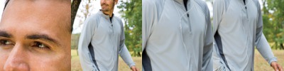 100% polyester • 4.1-oz. • moisture-wicking • Relaxed Fit • contrast side inserts • UPF 25 sun protection • zippered pocket for MP3 player • Sizes: S-3XL