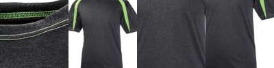 100% heathered polyester • 3.8 oz • moisture management/antimicrobial performance fabric • self-fabric collar • 100% polyester contrast shoulder panels and sleeves • double-needle bottom hem • heat seal logo on left sleeve • Sizes: XS-4XL