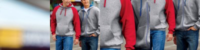55% cotton/45% polyester burnout fabric • 7 oz. • acid-washed with silicone finish • cut "v" neckline • contrast sleeves • hood and waistband • Sizes: S-2XL