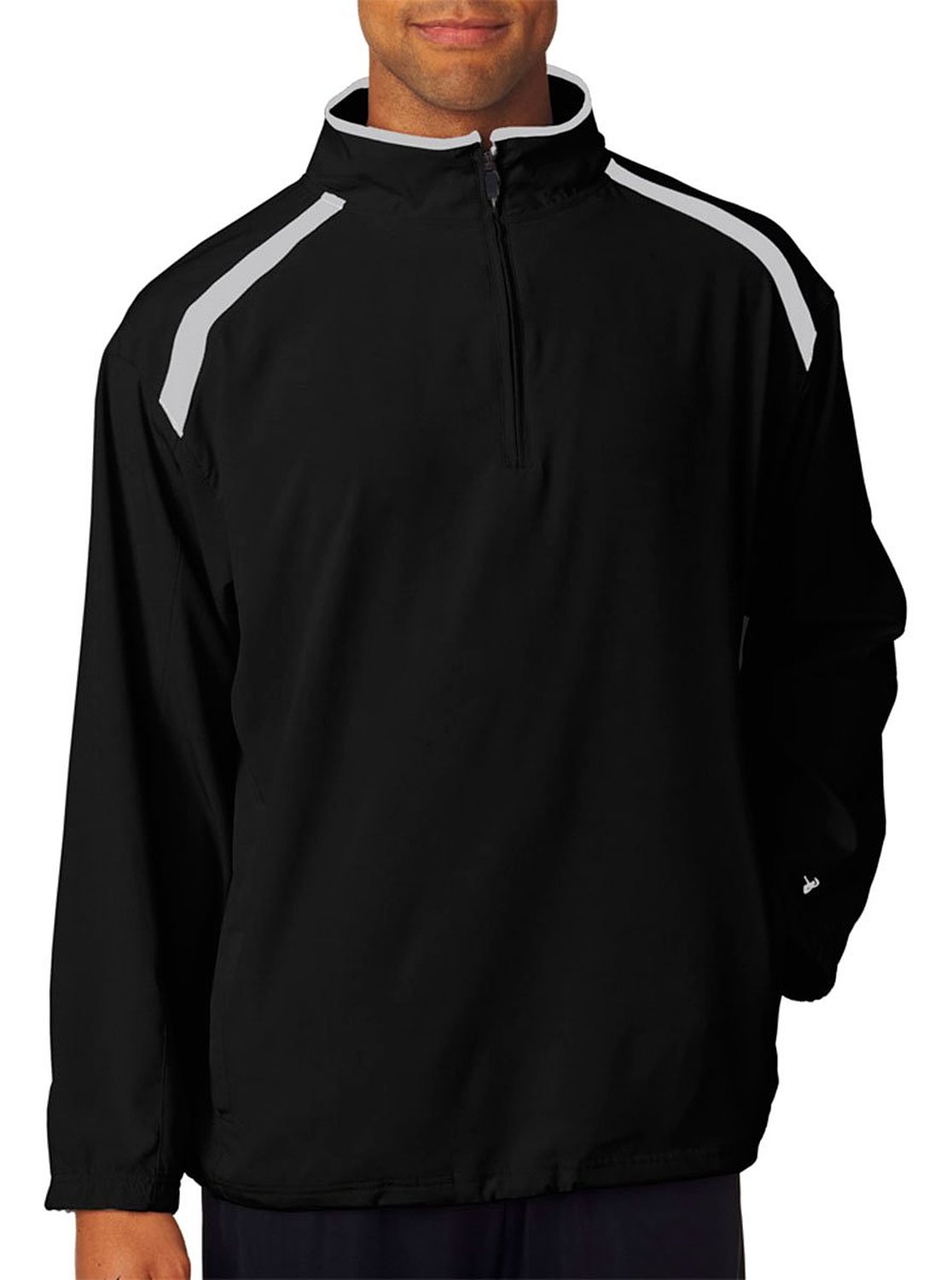 100% heathered polyester moisture management fabric • 7-oz. • 1/4 zip with self fabric collar • Two front pockets • Open hem bottom • Cuffs feature smooth hem front with rib on back half • Embroidered Badger logo on left sleeve • Sizes: XS-4XL, see colors