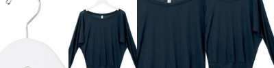 30-single 65% viscose/35% polyester • 3.7-oz. • ribbed cuffs and waistband • seam up center back • dolman sleeves • Sizes: S-2XL