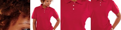 100% polyester • 3.6 oz. • moisture-wicking • UV protection • feminine fit • flat-knit collar • single-needle topstitching on neck • shoulders and armholes • 3 dyed-to-match buttons on a clean-finished placket • neck tape • double-needle half-moon patch • double-needle topstitching on sleeve and bottom hems • tagless • Sizes: S-3XL