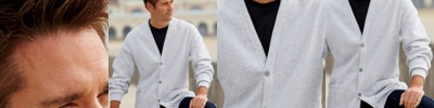 A handsome cardigan with pill-resistant smoothness, this blended marvel's high-density fabric allows for easy printing.