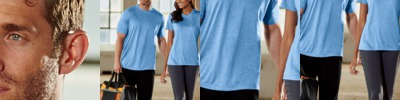 60% combed ringspun cotton/40% polyester vintage heathered fine jersey • 4.5-oz. • Taped shoulder-to-shoulder with EasyTearTM label • Double-needle hem sleeves and bottom • Sizes: S- 3XL, see colors