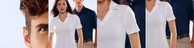 65% polyester/35% combed ring-spun cotton lightweight jersey • 3.7 oz. • fabric laundered for reduced shrinkage • 40 singles for extreme softness • front cover-stitched set-in self-fabric collar • satin label • select colors up to 2XL • Sizes: S-2XL