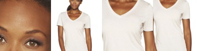4.5 oz. • 100% combed ringspun cotton (Heather is 93/7) jersey • Ribbed V-neck collar • Taped shoulder-to-shoulder with EasyTearTM label • Double-needle hem sleeves and bottom • White is sewn with 100% cotton thread • Sizes: S-2XL