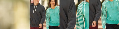 80% cotton/20% polyester fleece • 8 oz. • enzyme-washed for softness • unlined hood with contrast woven drawcord • knit cuffs • waistband and pocket trim • pouch pocket • Sizes: S-2XL