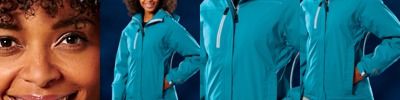 100% polyester shell and tricot lining • high stretch mini-grid ripstop shell treated with 5,000/5,000 waterproof and breathable StormX® coating • critically sealed seams • zippered chest pocket with opening for media device cords • two inner pockets • front zipper placket with hidden snaps • attached hood with toggles • adjustable sleeve cuffs • drawcord at bottom hem • Sizes: S-2XL