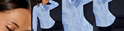 100% cotton • 4 oz. • non-iron treatment • darts on front and back for a feminine silhouette • spread collar • single button on cuffs • Sizes: S-2XL