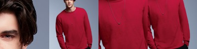 preshrunk 100% ring-spun cotton (blended ring-spun cotton/polyester in heather colors) • 5.4-oz. • 24 singles • tubular construction • seamed collar • shoulder-to-shoulder taping • rib-knit cuffs • double-needle neck and bottom hem • tear away label • Sizes: S-3XL