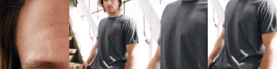 preshrunk 100% ring-spun cotton (blended preshrunk ring-spun cotton/polyester in heather colors) • 3.2 oz. • 40 singles • semi-fitted with side seams • 5/8” seamed collar • single-needle topstitched front neck • shoulder-to-shoulder taping • double-needle sleeve and bottom hems • tear-away label • Sizes: S-2XL