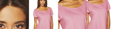 preshrunk 100% ring-spun cotton • 4.5-oz. • 30 singles • junior silhouette with side seams • single-needle neck • display tape • double-needle sleeve and bottom hems • tear-away label • Sizes: S-2XL