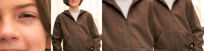 60/40 cotton/polyester fleece • 7.5-oz. • jersey-lined double-needle hem hood • pouch pockets • topstitch hood, neck and zipper • coverstitched shoulders and armholes • coverstitched ribbed cuffs and waistband • white is sewn with 100% cotton thread • Sizes: XS-L