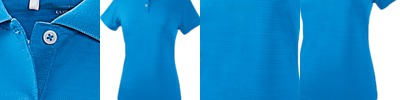 easy-care 100% polyester • 5-oz. • moisture-wicking • UPF 30 sun protection • shrink-and wrinkle-free • feminine silhouette • flat-knit collar • three-button placket with pearlized buttons • double-needle cuffs and bottom hem • side slits • tagless • Sizes: S-3XL