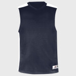 100% polyester moisture management/antimicrobial fabric • 3.5-oz. • Reversible V-neck tank • contrast side panels • Double -needle hemmed armholes and jersey bottom • Collegiate cut • Badger jock tag near bottom hem • Sizes: XS-2XL, see colors