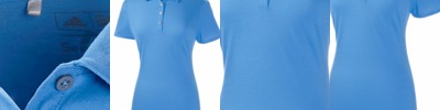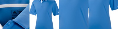 65% cotton/35% polyester jersey • 4.8 oz. • moisture-wicking finish • lightweight fabric with a soft hand. self-fabric collar • 4-button placket with grey-tone buttons • princess side seams and back center pleat for feminine fit • open-hem sleeves • adidas logo on back neck • Sizes: S-2XL