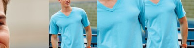 preshrunk 100% cotton jersey • 4.7 oz. • breathable and lightweight fabric with superior softness • slightly contoured contemporary junior silhouette with side seams • self-fabric mitered v-neck collar with single-needle cover-stitching • feminine cap sleeves • double-needle sleeve and bottom hems • tear-away label • Sizes: S-3XL