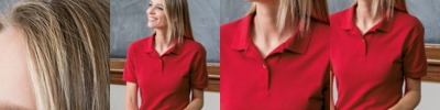 preshrunk 65% polyester/35% ring-spun cotton double piqué knit • 6.3 oz. • DryBlend® technology delivers moisture-wicking properties • missy contoured silhouette with side seams and side vents • contoured welt collar and cuffs • 2 matching buttons on a clean-finished reversed placket with reinforced bottom box • double-needle bottom hem • heat transfer label • Sizes: S-3XL