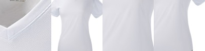 preshrunk 100% ring-spun cotton • 4.5-oz. • 30 singles • missy contoured silhouette with side seams • 1/2" rib-knit v-neck collar • shoulder-to-shoulder taping • double-needle sleeve and bottom hems • tear-away label • Sizes: S-2XL