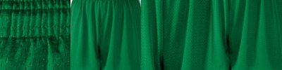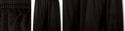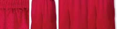 100% polyester • 3-oz. • 70-denier mesh with solid tricot liner • 5" inseam • athletic cut • covered elastic waistband and draw-cord • Sizes: XS-2XL