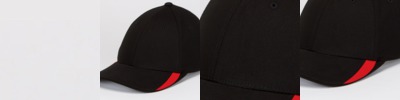 98% cotton/2% spandex • hard buckram front panel • low-profile • constructed • 6-panel • Permacurv® visor • contrast color on cut-and-sew visor design • 3 1/4" crown height • 4"w x 2"h imprint area • Sizes: S/M (6 3/4"-7 1/4"); L/XL (7 1/8"-7 5/8")