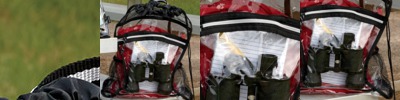 durable clear PVC • easy access to main compartment through cinch closure • zippered front pocket • mesh side pockets • stadium compliant • 4"w x 4"h approx. front pocket center imprint area • 3 2/5"w x 4 1/5"h max. NFL image imprint area • Sizes: 3 1/2"w x 13 1/2"h x 15"L