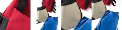 100% polypropylene • 2.7-oz. • contrast black drawstring • Sizes: 14"w x 17"h
